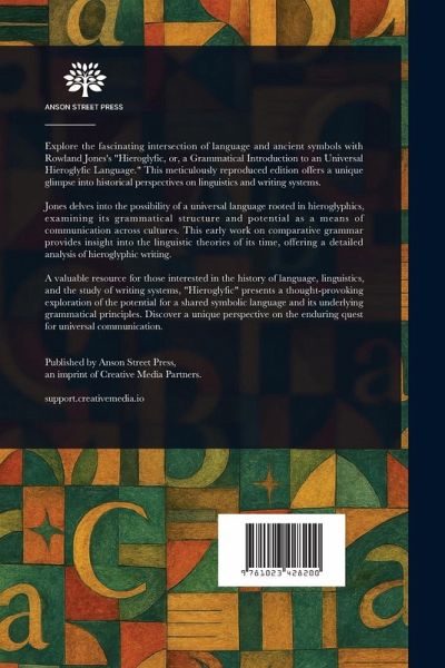 Explore the fascinating intersection of language and ancient symbols with Rowland Jones's "Hieroglyfic, or, a Grammatical Introduction to an Universal Hieroglyfic Language." This meticulously reproduced edition offers a unique glimpse into historical perspectives on linguistics and writing systems. Jones delves into the possibility of a universal language rooted in hieroglyphics, examining its grammatical structure and potential as a means of communication across cultures. This early work on comparative grammar provides insight into the linguistic theories of its time, offering a detailed analysis of hieroglyphic writing. A valuable resource for those interested in the history of language, linguistics, and the study of writing systems, "Hieroglyfic" presents a thought-provoking exploration of the potential for a shared symbolic language and its underlying grammatical principles. Discover a unique perspective on the enduring quest for universal communication. This work has been selected by scholars as being culturally important, and is part of the knowledge base of civilization as we know it. This work is in the public domain in the United States of America, and possibly other nations. Within the United States, you may freely copy and distribute this work, as no entity (individual or corporate) has a copyright on the body of the work. Scholars believe, and we concur, that this work is important enough to be preserved, reproduced, and made generally available to the public. We appreciate your support of the preservation process, and thank you for being an important part of keeping this knowledge alive and relevant.