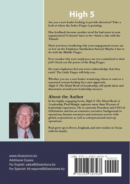 A creative and innovative approach to leadership that is simple to relate to and even easier to remember. You will always carry it with you and is available at your fingertips! "High 5: The Hand Book Of Leadership" uses the fingers of the left hand to illustrate the five essentials key principles for success in today's workplace. Whether you are a new leader wondering where to start or a seasoned veteran looking for a new approach, "High 5: The Handbook of Leadership", will generate new ideas in any work environment.