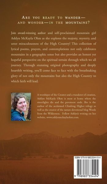 Are you ready to wander-and wonder-in the mountains? Join award-winning author and self-proclaimed mountain girl Ashlyn McKayla Ohm as she explores the majesty, mystery, and utter miraculousness of the High Country! This collection of lyrical poems, prayers, and contemplations not only celebrates mountains in a geographic sense but also provides an honest yet hopeful perspective on the spiritual terrain through which we all journey. Through stunning original photography and deeply heartfelt writing, you'll come face to face with the breathtaking glory of not only the mountains but also the High Country to which faith will lead.