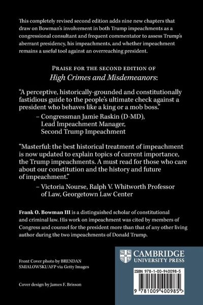 This book combines historical and constitutional analysis of impeachment in the UK and US with a lively new account of both Trump impeachments by a leading scholar whose writings and advice were influential in both cases. This second edition is the only comprehensive, up-to-date history of Anglo-American impeachment.