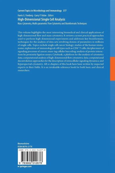 This volume highlights the most interesting biomedical and clinical applications of high-dimensional flow and mass cytometry. It reviews current practical approaches used to perform high-dimensional experiments and addresses key bioinformatic techniques for the analysis of data sets involving dozens of parameters in millions of single cells. Topics include single cell cancer biology; studies of the human immunome; exploration of immunological cell types such as CD8 + T cells; decipherment of signaling processes of cancer; mass-tag cellular barcoding; analysis of protein interactions by proximity ligation assays; Cytobank, a platform for the analysis of cytometry data; computational analysis of high-dimensional flow cytometric data; computational deconvolution approaches for the description of intracellular signaling dynamics and hyperspectral cytometry. All 10 chapters of this book have been written by respected experts in their fields. It is an invaluable reference book for bothbasic and clinical researchers.