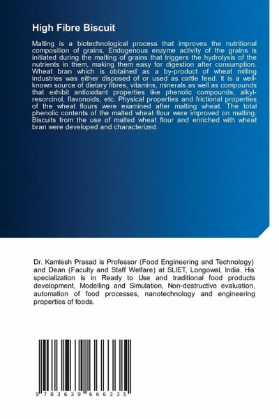 Malting is a biotechnological process that improves the nutritional composition of grains. Endogenous enzyme activity of the grains is initiated during the malting of grains that triggers the hydrolysis of the nutrients in them, making them easy for digestion after consumption. Wheat bran which is obtained as a by-product of wheat milling industries was either disposed of or used as cattle feed. It is a well-known source of dietary fibres, vitamins, minerals as well as compounds that exhibit antioxidant properties like phenolic compounds, alkyl-resorcinol, flavonoids, etc. Physical properties and frictional properties of the wheat flours were examined after malting wheat. The total phenolic contents of the malted wheat flour were improved on malting. Biscuits from the use of malted wheat flour and enriched with wheat bran were developed and characterized.