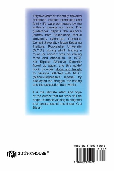 Fifty five years of "mentally" flavored childhood, studies, profession and family life were permeated by the author's courage and hope. This guide/book depicts the author's journey from Casablanca, McGill University (Montréal, Canada), Cornell University / Sloan-Kettering Institute, Rockefeller University (N.Y.C.), during which finding a "cure for cancer" was his driving force and obsession. In 1979, his Bipolar Affective Disorder flared up again; and this guide/book provides Hope and Insight to persons afflicted with M.D.I. (Manic-Depressive Illness) by displaying the struggle, the coping and the perception from within. It is the ultimate intent and hope of the author that his work will be helpful to those wishing to heighten their awareness of this illness. G-d Bless!