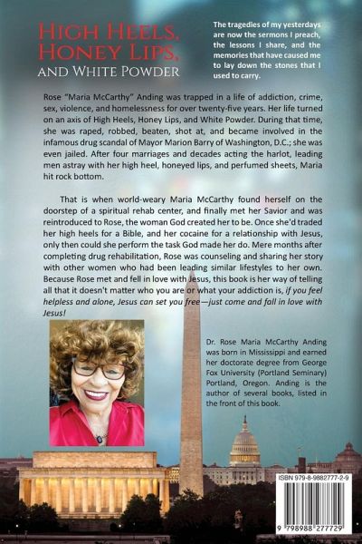 The tragedies of my yesterdays are now the sermons I preach, the lessons I share, and the memories that have caused me to lay down the stones that I used to carry. Rose "Maria McCarthy" Anding was trapped in a life of addiction, crime, sex, violence, and homelessness for over twenty-five years. Her life turned on an axis of High Heels, Honey Lips, and White Powder. During that time, she was raped, robbed, beaten, shot at, and became involved in the infamous drug scandal of Mayor Marion Barry of Washington, D.C.; she was even jailed. After four marriages and decades acting the harlot, leading men astray with her high heel, honeyed lips, and perfumed sheets, Maria hit rock bottom. That is when world-weary Maria McCarthy found herself on the doorstep of a spiritual rehab center, and finally met her Savior and was reintroduced to Rose, the woman God created her to be. Once she'd traded her high heels for a Bible, and her cocaine for a relationship with Jesus, only then could she perform the task God made her do. Mere months after completing drug rehabilitation, Rose was counseling and sharing her story with other women who had been leading similar lifestyles to her own. Because Rose met and fell in love with Jesus, this book is her way of telling all that it doesn't matter who you are or what your addiction is, if you feel helpless and alone, Jesus can set you free-just come and fall in love with Jesus!