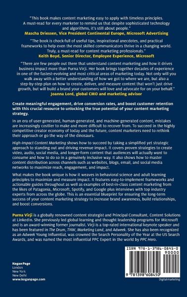 Create meaningful engagement, drive conversion rates and boost customer retention with this crucial resource to unlocking the true potential of your content marketing strategy. In the face of countless platforms and content forms it can be hard to know where to begin with creating successful content marketing that cuts through the noise rather than just contributes to it. High-Impact Content Marketing shows how to succeed by taking a simplified and strategic approach to standing out in the competitive digital space. Covering how to create customer-centric and inclusive video, audio, social media and longer-form content, it also shows how to successfully distribute content across channels such as websites, blogs, email and social media networks including LinkedIn, Instagram and Twitter. High-Impact Content Marketing features frameworks, exercises and planning guides throughout, as well as case studies and examples of best-in-class content marketing from the likes of Ikea, Lego and Nike and interviews with top industry experts. Guidance is also included on how to align content with various stages of the customer journey, embed behavioral science principles to maximize impact and measure appropriately to drive improvement. This is an essential blueprint for ensuring the long-term success of your content marketing strategy to increase brand awareness, build relationships and boost conversions.