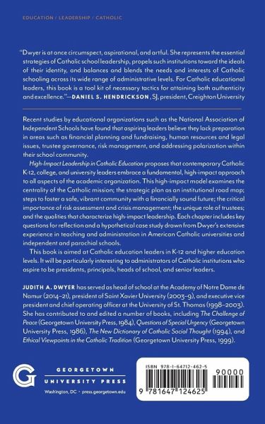 A guide to the high-impact leadership that is essential for realizing successful, vibrant Catholic K-12 schools, colleges, and universities Recent studies by educational organizations, such as the National Association of Independent Schools, have found that aspiring leaders believe they lack preparation in areas such as financial planning and fundraising, human resource and legal issues, trustee governance, risk management, and addressing polarization within their school community. High-Impact Leadership in Catholic Education proposes that contemporary Catholic K-12, college, and university leaders embrace a fundamental, high-impact approach to all aspects of the academic organization. This high-impact model examines the centrality of the Catholic mission; the strategic plan as an institutional road map; steps to foster a safe, vibrant community with a financially sound future; the critical importance of risk assessment and crisis management; the unique role of trustees; and the qualities that characterize high-impact leadership. On the basis of Dwyer's extensive experience in teaching and administration in American Catholic universities and independent schools, each chapter also includes critical questions for reflection and a hypothetical case study. This book is aimed at leaders in Catholic education at K-12 and higher education levels. It will be particularly interesting to administrators of Catholic institutions who aspire to be presidents, principals, heads of school, and senior leaders.