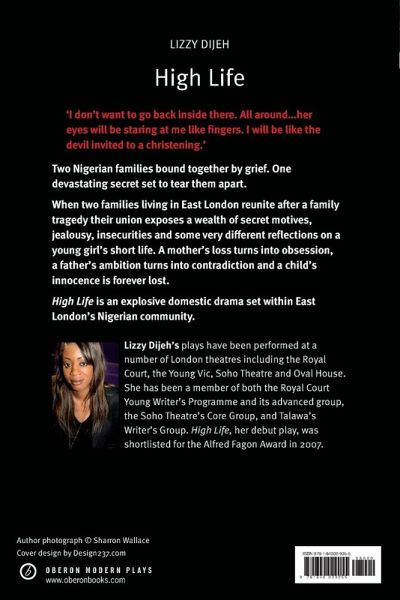 High Life is a powerful play about teenage suicide and family bereavement. Two Nigerian families bound together by grief. One devastating secret set to tear them apart. Reunited in grief, a wealth of secret motives, jealousy and insecurities are exposed. A mother's loss turns into obsession