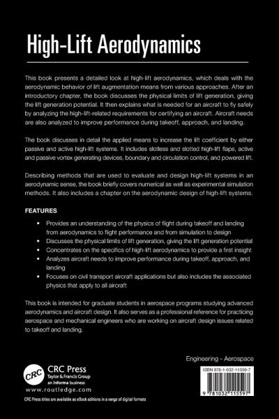 The book presents a detailed look at high-lift aerodynamics from various approaches. It discusses the physical limits of lift generation giving the lift generation potential, explains what is needed for an aircraft to fly safely, and analyzes how to improve its performance during take-off, approach, and landing.