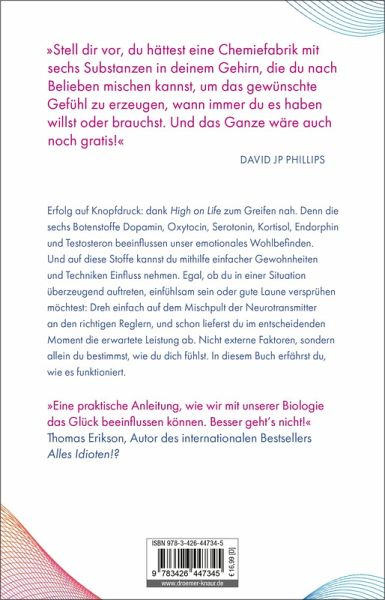 Erfolg auf Knopfdruck: dank des Ratgebers High on Life von David JP Phillips zum Greifen nah. Denn in vielen Fällen beeinflussen die sechs Hormone Dopamin, Oxytocin, Serotonin, Kortisol, Endorphine und Testosteron das emotionale Wohlbefinden. Und auf diese Stoffe können Sie mithilfe einfachster Gewohnheiten Einfluss nehmen.