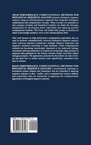 High Performance Computational Methods for Biological Sequence Analysis is tremendously important to biomedical science students and researchers who are interested in applying sequence analyses to their studies, and to computational science students and researchers who are interested in applying new computational approaches to biological sequence analyses.