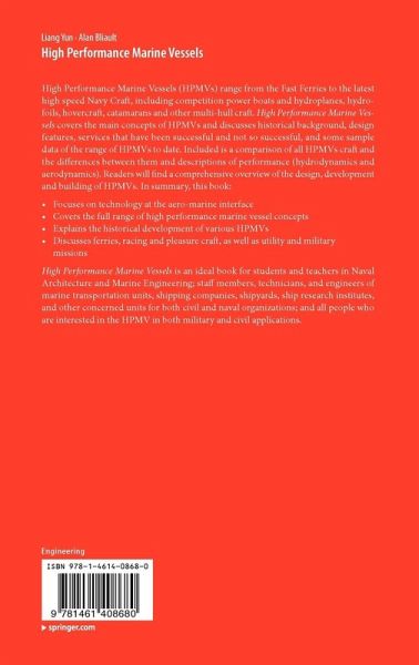 High Performance Marine Vessels (HPMVs) range from the Fast Ferries to the latest high speed Navy Craft, including competition power boats and hydroplanes, hydrofoils, hovercraft, catamarans and other multi-hull craft. High Performance Marine Vessels covers the main concepts of HPMVs and discusses historical background, design features, services that have been successful and not so successful, and some sample data of the range of HPMVs to date. Included is a comparison of all HPMVs craft and the differences between them and descriptions of performance (hydrodynamics and aerodynamics). Readers will find a comprehensive overview of the design, development and building of HPMVs.