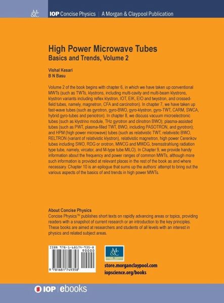 Volume 2 of the book begins with chapter 6, in which we have taken up conventional MWTs (such as TWTs, klystrons, including multi-cavity and multi-beam klystrons, klystron variants including reflex klystron, IOT, EIK, EIO and twystron, and crossed-field tubes, namely, magnetron, CFA and carcinotron). In chapter 7, we have taken up fast-wave tubes (such as gyrotron, gyro-BWO, gyro-klystron, gyro-TWT, CARM, SWCA, hybrid gyro-tubes and peniotron). In chapter 8, we discuss vacuum microelectronic tubes (such as klystrino module, THz gyrotron and clinotron BWO); plasma-assisted tubes (such as PWT, plasma-filled TWT, BWO, including PASOTRON, and gyrotron); and HPM (high power microwave) tubes (such as relativistic TWT, relativistic BWO, RELTRON (variant of relativistic klystron), relativistic magnetron, high power Cerenkov tubes including SWO, RDG or orotron, MWCG and MWDG, bremsstrahlung radiation type tube, namely, vircator, and M-type tube MILO). In Chapter 9, we provide handy information about the frequency and power ranges of common MWTs, although more such information is provided at relevant places in the rest of the book as and where necessary. Chapter 10 is an epilogue that sums up the authors' attempt to bring out the various aspects of the basics of and trends in high power MWTs.