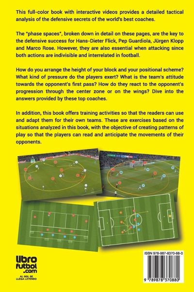 This full-color book with interactive videos provides a detailed tactical analysis of the defensive secrets of the world's best coaches. The "phase spaces", broken down in detail on these pages, are the key to the defensive success for Hans-Dieter Flick, Pep Guardiola, Jürgen Klopp and Marco Rose. However, they are also essential when attacking since both actions are indivisible and interrelated in football. How do you arrange the height of your block and your positional scheme? What kind of pressure do the players exert? What is the team's attitude towards the opponent's first pass? How do they react to the opponent's progression through the center zone or on the wings? Dive into the answers provided by these top coaches. In addition, this book offers training activities so that the readers can use and adapt them for their own teams. These are exercises based on the situations analyzed in this book, with the objective of creating patterns of play so that the players can read and anticipate the movements of their opponents.