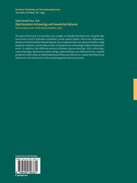 The aim of this book is to provide a new insight on Neanderthal behaviour using the data recovered in level J of Romaní rockshelter (north-eastern Spain). Due to the sedimentary dynamics that formed the Romaní deposit, the occupation layers are characterized by a high temporal resolution, which makes it easier to interprete the archaeological data in behavioural terms. In addition, the different analytical domains (geoarchaeology, lithic technology, zooarchaeology, taphonomy, anthracology, palaeontology) are addressed from a spatial perspective that is basic to understand human behaviour, but also to evaluate the behavioural inferences in the framework of the archaeological formation processes.