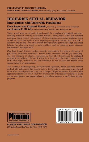 High-risk sexual behavior has been linked to social problems such as substance abuse, domestic violence, homelessness, and deprivation. This volume's unique multidisciplinary biopsychosocial approach combines relevant medical information regarding disease states with the cultural, social, and psychological facets of successful prevention programs. Becker and Rankin outline specific interventions that address the needs of particularly vulnerable populations: women, ethnic minorities, and the gay community. Useful chapter summaries which review the pros and cons of different approaches will aid both the student and the practitioner.