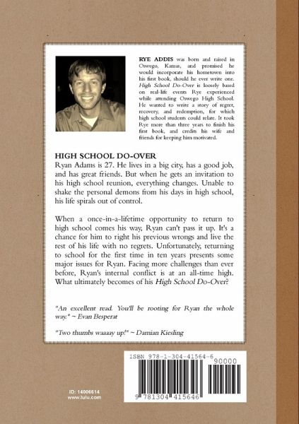 Ryan Adams is 27. He lives in a big city, has a good job, and has great friends. But when he gets an invitation to his high school reunion, everything changes. Unable to shake the personal demons from his days in high school, his life spirals out of control. When a once-in-a-lifetime opportunity to return to high school comes his way, Ryan can't pass it up. It's a chance for him to right his previous wrongs and live the rest of his life with no regrets. Unfortunately, returning to high school for the first time in ten years presents some major issues for Ryan. Facing more challenges than ever before, Ryan's internal conflict is at an all-time high. What ultimately becomes of his High School Do-Over?