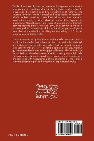 A description of both the theory and practice of physical measurements that use high-sensitivity moiré - principally moiré interferometry. The focus here is on the mechanics and micromechanics of materials and structural elements and the book includes new studies published for the first time. Diverse fields are addressed: advanced composite materials, thermal stresses, electronic packaging, fracture, metallurgy, time-dependence, strain gage calibration. All the methods can be applied for whole-field measurements on nearly and solid bodies. This reader-friendly book will serve engineers and scientists who are concerned with measurements of real phenomena, while also stimulating students to pursue the treasures of experimental analysis.