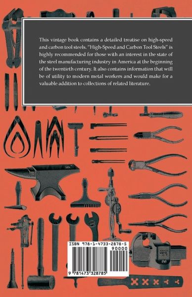 This vintage book contains a detailed treatise on high-speed and carbon tool steels. "High-Speed and Carbon Tool Steels" is highly recommended for those with an interest in the state of the steel manufacturing industry in America at the beginning of the twentieth century. It also contains information that will be of utility to modern metal workers and would make for a valuable addition to collections of related literature. Contents include: "Tool Steel for the Unites States Navy", "Relation of Price of Tool Steel to Manufacturing Costs", "The Influence of Heat on Hardened Tool Steels", "Development and Use of High-speed Steel", and "Hardening and Tempering of Steel". Many vintage books such as this are increasingly scarce and expensive. We are republishing this volume now in an affordable, modern edition complete with a specially commissioned new introduction on metal work. Originally published in 1914.