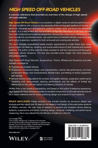 A concise reference that provides an overview of the design of high speed off-road vehicles High Speed Off-Road Vehicles is an excellent, in-depth review of vehicle performance in off-road conditions with a focus on key elements of the running gear systems of vehicles. In particular, elements such as suspension systems, wheels, tyres, and tracks are addressed in-depth. It is a well-written text that provides a pragmatic discussion of off-road vehicles from both a historical and analytical perspective. Some of the unique topics addressed in this book include link and flexible tracks, ride performance of tracked vehicles, and active and semi-active suspension systems for both armoured and unarmoured vehicles. The book provides spreadsheet-based analytic approaches to model these topic areas giving insight into steering, handling, and overall performance of both tracked and wheeled systems. The author further extends these analyses to soft soil scenarios and thoroughly addresses rollover situations. The text also provides some insight into more advanced articulated systems. High Speed Off-Road Vehicles: Suspensions, Tracks, Wheels and Dynamics provides valuable coverage of: * Tracked and wheeled vehicles * Suspension component design and characteristics, vehicle ride performance, link track component design and characteristics, flexible track, and testing of active suspension test vehicles * General vehicle configurations for combat and logistic vehicles, suspension performance modelling and measurement, steering performance, and the effects of limited slip differentials on the soft soil traction and steering behavior of vehicles Written from a very practical perspective, and based on the author's extensive experience, High Speed Off-Road Vehicles provides an excellent introduction to off-road vehicles and will be a helpful reference text for those practicing design and analysis of such systems.