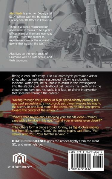 Being a cop isn't easy. Just ask motorcycle patrolman Adam King, who has just been suspended following a shooting incident. Worse yet, he is unable to assist in the investigation into the stabbing of his childhood pal. Luckily, his brethren in the department have got his back. Is it fate, or divine intervention that sees him through the ordeal? "Knifing through the gridlock at high speed,silently pushing his way past pedestrians, a motorcycle patrolman weaves his way to the scene. In one fluid motion he dismounts his bike ans sprints toward the center of the action..." "What's that saying about keeping your friends close..."Mundy says with a twinkle in his eye. "...and your enemies even closer?" "The others form a circle around Johnny, as the doctors unplug him from life support. "Lord," the priest begins Last Rites. "We deliver unto You...Your faithful servant..." HIGH SPEED SILENCE grips the reader tightly from the word GO, and never lets go.