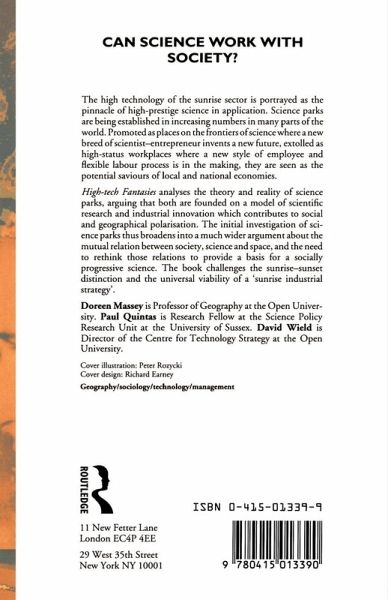 Science parks are becoming established in increasing numbers in almost all parts of the world. Promoted as places on the frontiers of science where a new breed of scientist-entrepreneur invents a new future, extolled as high-status workplaces where a new style of employee and flexible labour process is in the making, they are seen as the potential saviours of local and national economies. High-Tech Fantasies criticises the divisive hype of science parks arguing that both the theory and practice are unproductive for the economy and for any socially progressive science and technology. Questioning responsibility, innovation and symbolism, the authors explore the mutual determination of society, science and space.
