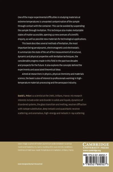 One of the major experimental difficulties in studying materials at extreme temperatures is unwanted contamination of the sample through contact with the container. This can be avoided by suspending the sample through levitation. This technique also makes metastable states of matter accessible, opening up new avenues of scientific enquiry, as well as possible new materials for technological applications. This book describes several methods of levitation, the most important being aerodynamic, electromagnetic and electrostatic. It summarizes the state-of-the-art of the measurement of structural, dynamic and physical properties with levitation techniques, the considerable progress made in this field in the past two decades, and prospects for the future. It also explores the concepts behind the experiments and associated theoretical ideas. Aimed at researchers in physics, physical chemistry and materials science, the book is also of interest to professionals working in high-temperature materials processing and the aerospace industry.
