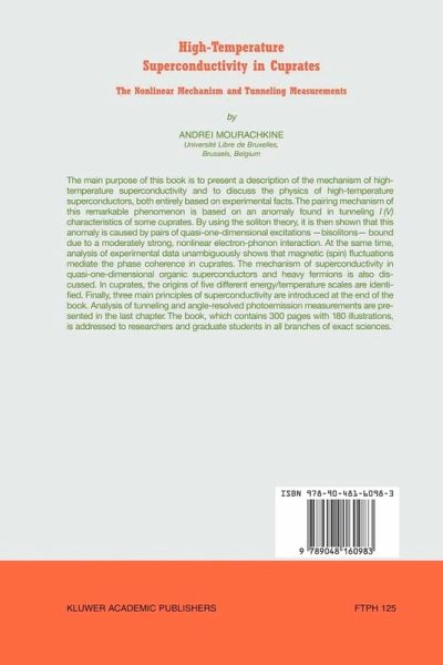 "The Frontiers of Knowhledge (to coin a phrase) are always on the move. - day's discovery will tomorrow be part of the mental furniture of every research worker. By the end of next week it will be in every course of graduate lectures. Within the month there will be a clamour to have it in the undergraduate c- riculum. Next year, I do believe, it will seem so commonplace that it may be assumed to be known by every schoolboy. "The process of advancing the line of settlements, and cultivating and c- ilizing the new territory, takes place in stages. The original papers are p- lished, to the delight of their authors, and to the critical eyes of their readers. Review articles then provide crude sketch plans, elementary guides through the forests of the literature. Then come the monographs, exact surveys, mapping out the ground that has been won, adjusting claims for priority, putting each fact or theory into its place" (J. M. Ziman, Principles of the Theory of Solids (Cambridge University Press, 1972) p.v). The main purpose of the book is to present the mechanism of - perconductivity discovered in 1986 by J. G. Bednorz and K. A. Müller, and to discuss the physics of superconductors. The last chapter of the book presents analysis of tunneling measurements in cuprates. The book is - dressed to researchers and graduate students in all branches of exact sciences.