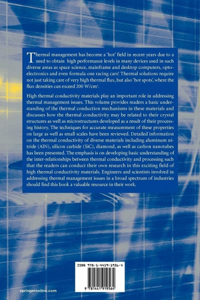Thedemandfore?cientthermalmanagementhasincreasedsubstantiallyover the last decade in every imaginable area, be it a formula 1 racing car suddenly braking to decelerate from 200 to 50 mph going around a sharp corner, a space shuttle entering the earth's atmosphere, or an advanced microproc- sor operating at a very high speed. The temperatures at the hot junctions are extremely high and the thermal ?ux can reach values higher than a few 2 hundred to a thousand watts/cm in these applications. To take a speci?c example of the microelectronics area, the chip heat ?ux for CMOS microp- cessors, though moderate compared to the numbers mentioned above have 2 already reached values close to 100 W/cm , and are projected to increase 2 above 200 W/cm over the next few years. Although the thermal mana- ment strategies for microprocessors do involve power optimization through improved design, it is extremely di?cult to eliminate "hot spots" completely. This is where high thermal conductivity materials ?nd most of their appli- tions, as "heat spreaders". The high thermal conductivity of these materials allows the heat to be carried away from the "hot spots" very quickly in all directions thereby "spreading" the heat. Heat spreading reduces the heat ?ux density, and thus makes it possible to cool systems using standard cooling solutions like ?nned heat sinks with forced air cooling.