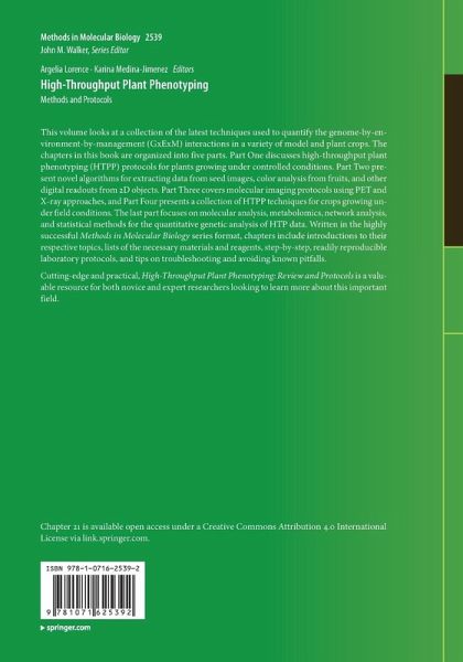 This volume looks at a collection of the latest techniques used to quantify the genome-by-environment-by-management (GxExM) interactions in a variety of model and plant crops. The chapters in this book are organized into five parts. Part One discusses high-throughput plant phenotyping (HTPP) protocols for plants growing under controlled conditions. Part Two present novel algorithms for extracting data from seed images, color analysis from fruits, and other digital readouts from 2D objects. Part Three covers molecular imaging protocols using PET and X-ray approaches, and Part Four presents a collection of HTPP techniques for crops growing under field conditions. The last part focuses on molecular analysis, metabolomics, network analysis, and statistical methods for the quantitative genetic analysis of HTP data. Written in the highly successful Methods in Molecular Biology series format, chapters include introductions to their respective topics, lists of the necessary materials andreagents, step-by-step, readily reproducible laboratory protocols, and tips on troubleshooting and avoiding known pitfalls.