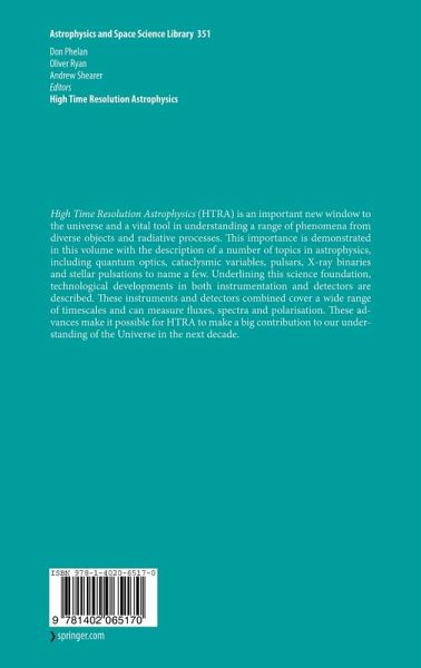 High Time Resolution Astrophysics (HTRA) is an important new window to the universe and a vital tool in understanding a range of phenomena from diverse objects and radiative processes. This importance is demonstrated in this volume with the description of a number of topics in astrophysics, including quantum optics, cataclysmic variables, pulsars, X-ray binaries and stellar pulsations to name a few. Underlining this science foundation, technological developments in both instrumentation and detectors are described. These instruments and detectors combined cover a wide range of timescales and can measure fluxes, spectra and polarisation. These advances make it possible for HTRA to make a big contribution to our understanding of the Universe in the next decade.