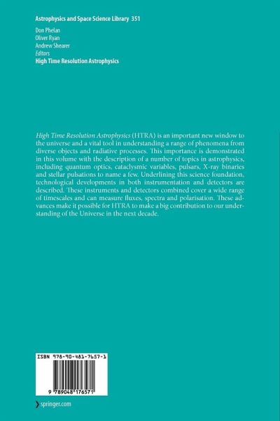 High Time Resolution Astrophysics and Pulsars.- High Time Resolution Observations of Cataclysmic Variables.- High-Speed Optical Observations of X-ray Binaries.- Stellar Pulsation, Subdwarf B Stars and High Time Resolution Astrophysics.- High-Speed Optical Spectroscopy.- Photonic Astronomy and Quantum Optics.- ULTRACAM: An Ultra-Fast, Triple-Beam CCD Camera for High-Speed Astrophysics.- OPTIMA: A High Time Resolution Optical Photo-Polarimeter.- From QuantEYE to AquEYE-Instrumentation for Astrophysics on its Shortest Timescales.- Fast Spectroscopy and Imaging with the FORS2 HIT Mode.- An Ultra-High-Speed Stokes Polarimeter forAstronomy.- Use of an Extremely Large Telescope for HTRA.- EMCCD Technology in High Precision Photometry on Short Timescales.- The Development of Avalanche Amplifying pnCCDs: A Status Report.- Geiger-mode Avalanche Photodiodes for High Time Resolution Astrophysics.- Transition Edge Cameras for Fast Optical Spectrophotometry.- Imaging Photon Counting Detectors for High Time Resolution Astronomy.