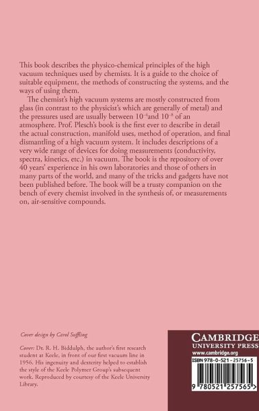 This 1989 book describes the physico-chemical principles of the high vacuum techniques used by chemists. It is a guide to the choice of suitable equipment, the methods of constructing the systems, and the ways of using them. Professor Plesch's book is the only up-to-date work on the type of high vacuum systems (HVS) used by chemists and it is the first ever to describe in detail the actual construction, manifold uses, method of operation, and final dismantling of an HVS. It includes descriptions of a very wide range of devices for making measurements (conductivity, spectra, kinetics, etc.) in vacuum. The author draws on over 40 years of his own experiences and those of others in many parts of the world, and many of the tricks and gadgets have not been published before. The book will be an essential companion on the bench of every chemist involved in the synthesis of, or measurements on, air-sensitive compounds.