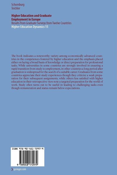 From autumn 1998 to spring 2000, about 3,000 graduates each from nine countries in the European Union (Austria, Finland, France, Germany, Italy, the Netherlands, Spain, Sweden, United Kingdom), one EFTA country (Norway), one of the Central and Eastern European countries in transition (the Czech Republic) and one econo- cally advanced country outside Europe (Japan) provided information through a wr- ten questionnaire on the relationship between higher education and employment three to four years after graduation. In total, over 40,000 graduates from higher education institutions answered questions on their socio-biographical background, study paths, transition from higher education to employment, early career, links between study and employment, job satisfaction and their retrospective view on higher education. The study provided a unique opportunity to examine how far the relationships - tween higher education and the world of work are similar or different in the Western Europeancountries. This became clearer through the inclusion of one country of the Central and Eastern European countries and one country outside Europe. The study also helped to understand the common elements and differences between various fields of study and occupational areas. It made it possible to analyse current salient issues of higher education, e. g. equality, the role of educational levels, the demand for specialized or general competences, the growing role of international mobility and lifelong education, the regional diversity in higher education.
