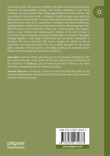 Around the world, the landscape of Higher Education is increasingly shaped by discourses of employability, rankings, and student satisfaction. Under these conditions, the role of universities in preparing students for all facets of life, and to contribute to the public good, is reshaped in significant ways: ways which are often negative and pessimistic. This book raises important and pressing questions about the nature and role of universities as formative educational institutions, drawing together contributors from both Western and non-Western perspectives. While the editors and contributors critique the current situation, the chapters evince a more humane and compassionate framing of the work of and in universities, based on positive and valued relationships and notions of the good. Drawing together a wide range of theoretical and conceptual frameworks to illuminate the issues discussed, this volume changes the debate to one of hopefulness and inspiration about the role of higher education for the public good: ultimately looking towards a potentially exciting and rewarding future through which humanity and the planet can flourish.
