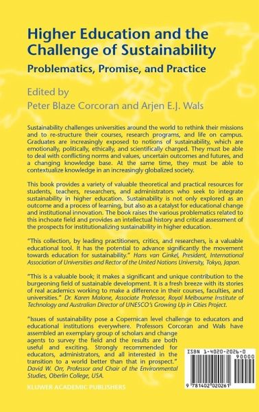 "Issues of sustainability pose a Copernican level challenge to educators and educational institutions everywhere. Professors Corcoran and Wals have assembled an exemplary group of scholars and change agents to survey the field and the results are both useful and exciting. Strongly recommended for educators, administrators, and all interested in the transition to a world better than that in prospect."