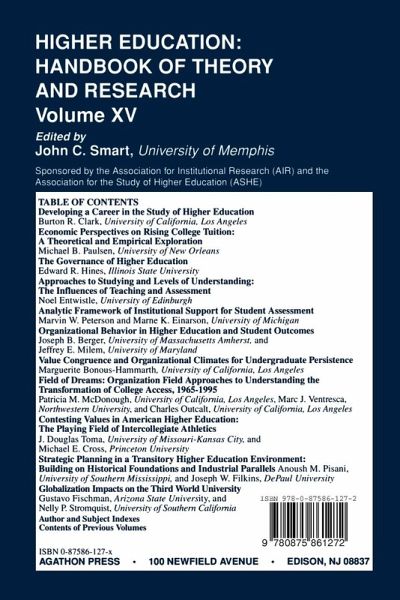 The Handbook series provides a compendium of thorough and integrative literature reviews on a diverse array of topics of interest to the higher education scholarly and policy communities. Each chapter provides a comprehensive review of research findings on a selected topic, critiques the research literature in terms of its conceptual and methodological rigor, and sets forth an agenda for future research intended to advance knowledge on the chosen topic.
