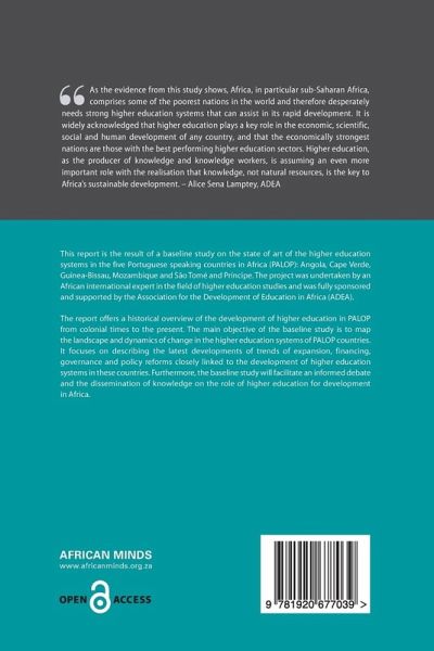 This publication is the result of a baseline study of the state of the higher education systems in the five Portuguese speaking countries in Africa (PALOP): Angola, Cape Verde, Guinea-Bissau, Mozambique and Sao Tome and Principe. The project was undertaken by an African international expert in the field of higher education studies and was fully sponsored and supported by the Association for the Development of Education in Africa (ADEA). The report offers a historical overview of the development of higher education in PALOP from colonial times to the present. The main objective of this baseline study is to map the landscape and dynamics of change in the higher education systems of PALOP countries. It focuses on describing the latest developments of trends of expansion, financing, governance and policy reforms closely linked to the development of higher education systems in these countries. Furthermore, the study will facilitate an informed debate and the dissemination of knowledge on the role of higher education for development in Africa.