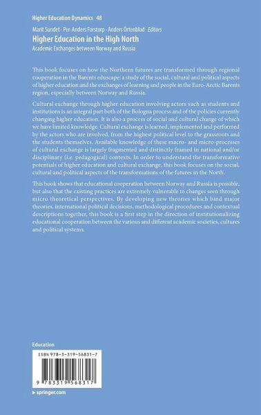 This book focuses on how the Northern futures are transformed through regional cooperation in the Barents eduscape: a study of the social, cultural and political aspects of higher education and the exchanges of learning and people in the Euro-Arctic Barents region, especially between Norway and Russia.