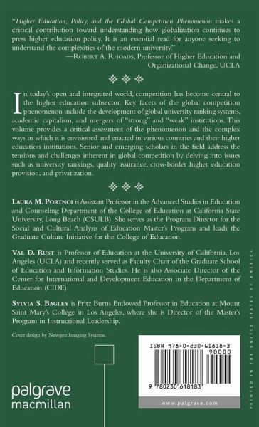 "Higher Education, Policy, and the Global Competition Phenomenon makes a critical contribution toward understanding how globalization continues to press higher education policy. It is an essential read for anyone seeking to understand the complexities of the modern university." - Robert A. Rhoads, Professor of Higher Education and Organizational Change, UCLA