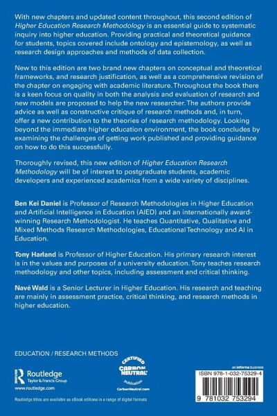 Thoroughly revised, this new edition of Higher Education Research Methodology will be of interest to postgraduate students, academic developers and experienced academics from a wide variety of disciplines.