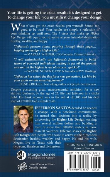 Your life is getting the exact results it's designed to get. To change your life, you must first change your design. What if you got the exact results you wanted? Sound too good to be true? Your results are simply a reflection of your thinking up until now. The 7 steps that make up Higher Life Design will equip you to arrive at your intended destination healthy, wealthy, and happy. Despite possessing great entrepreneurial ambition for a new start-up business, by the age of 20 life had Jefferson in a choke hold. His bank account was in the red at -$1,100 and his debt load of $70,000 told a similar tale. Jefferson decided he needed a change. With a newfound commitment, he turned that decision into a reality by discovering the Higher Life Design. Over time, this process helped him earn several million dollars and build a team of more than 100,000 leaders in more than 30 countries. Jefferson shares the Higher Life Design with people who want to arrive at their intended destination healthy, wealthy, and happy. He and his wife, Megan, live in Texas with their two sons, Harrison and Livingston.