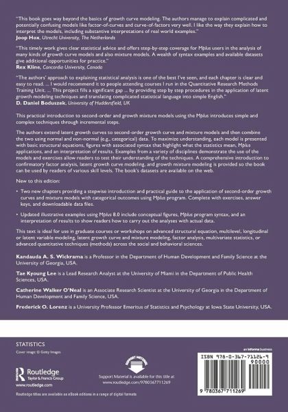 The authors extend latent growth curves to second-order growth curve and mixture models and then combine the two using normal and non-normal (e.g., categorical) data. To maximize understanding, each model is presented with basic structural equations, figures with associated syntax that highlight what the statistics mean, Mplus applications, and an interpretation of results. Examples from a variety of disciplines demonstrate the use of the models and exercises allow readers to test their understanding of the techniques. A comprehensive introduction to confirmatory factor analysis, latent growth curve modeling, and growth mixture modeling is provided so the book can be used by readers of various skill levels. The book's datasets are available on the web.