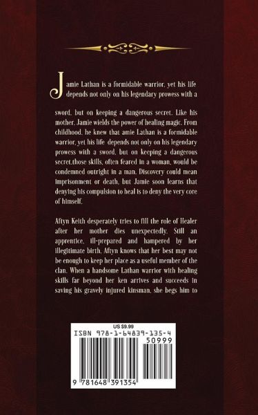 Jamie Lathan is a formidable warrior, yet his life depends not only on his legendary prowess with a sword, but on keeping a dangerous secret. Like his mother, Jamie wields the power of healing magic. From childhood, he knew that those skills, often feared in a woman, would be condemned outright in a man. Discovery could mean imprisonment or death, but Jamie soon learns that denying his compulsion to heal is to deny the very core of himself. Aftyn Keith desperately tries to fill the role of Healer after her mother dies unexpectedly. Still an apprentice, ill-prepared and hampered by her illegitimate birth, Aftyn knows that her best may not be enough to keep her place as a useful member of the clan. When a handsome Lathan warrior with healing skills far beyond her ken arrives and succeeds in saving his gravely injured kinsman, she begs him to teach her. Jamie risks everything in choosing to trust Aftyn. But when she unwittingly betrays him, Aftyn is faced with a decision that may gain Jamie's freedom, but cost her the only home that she has ever known. In the face of her growing feelings for Jamie, she knows that either decision will leave her heart broken beyond any Healer's mending.