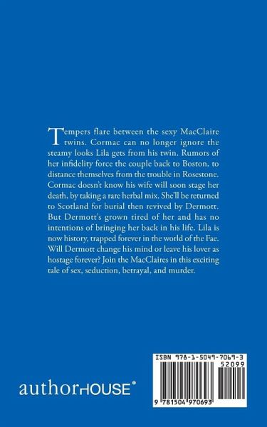 Tempers flare between the sexy MacClaire twins. Cormac can no longer ignore the steamy looks Lila gets from his twin. Rumors of her infidelity force the couple back to Boston, to distance themselves from the trouble in Rosestone. Cormac doesn't know his wife will soon stage her death, by taking a rare herbal mix. She'll be returned to Scotland for burial then revived by Dermott. But Dermott's grown tired of her and has no intentions of bringing her back in his life. Lila is now history, trapped forever in the world of the Fae. Will Dermott change his mind or leave his lover as hostage forever? Join the MacClaires in this exciting tale of sex, seduction, betrayal, and murder.