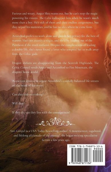 Furious and weary, Angus Shea wants out, but he can't stop the magic powering his visions. The Celts kidnapped him when he wasn't much more than a boy and forced him to do their bidding. He's sick of them and their endless assignments, but they wiped his memories, and he has no idea where he came from. Arianrhod prefers to work alone, mostly because she harbors a dirty little secret. She's not exactly a virgin, and she'd be laughed out of the Pantheon if the truth surfaced. Despite the complications of leading a double life, she's never found a lover who tempted her to walk away from her fellow Celtic gods. That comes to a crashing halt when she meets Angus in Fire Mountain, the dragons' home world. Attraction ignites, hot and so urgent Arianrhod's carefully balanced life teeters on the brink of discovery. Angus is everything she's ever wanted, but he's far too close to her Celtic kin to keep her secret safe. Angus wants her too, but she's a Celt. He's hated them forever, and she's part of everything he's lain awake nights plotting to escape from.