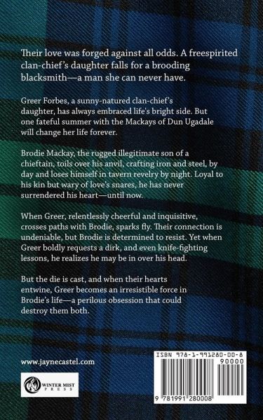 Their love was forged against all odds. A free-spirited clan-chief's daughter falls for a brooding blacksmith-a man she can never have. Grumpy/Sunshine meets fated love in Medieval Scotland. Greer Forbes, a sunny clan-chief's daughter, has always embraced life's bright side. But one fateful summer with the Mackays of Dun Ugadale will change her life forever. Brodie Mackay, the rugged, illegitimate son of a chieftain, toils over his anvil, crafting iron and steel by day and losing himself in tavern revelry by night. Loyal to his kin but wary of love's snares, he has never surrendered his heart-until now. When Greer, relentlessly cheerful and inquisitive, crosses paths with Brodie, sparks fly. Their connection is undeniable, but Brodie is determined to resist. Yet when Greer boldly requests a dirk, and even knife-fighting lessons, he realizes he may be in over his head. But the die is cast, and when their hearts entwine, Greer becomes an irresistible force in Brodie's life-a perilous obsession that could destroy them both. Rebellious Highland Hearts is a four-book series following Iver Mackay of Dun Ugadale and his three brothers-Lennox, Kerr, and Brodie-as they meet women who will change their lives forever.