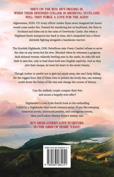 She's on the run. He's digging in. When their destinies collide in medieval Scotland, will they forge a love for the ages? Afghanistan, 2020. US Army officer Amber Ryan never imagined her honor would come under fire. Framed for murdering her ex-boyfriend, she flees to Scotland and hides out in the ruins of Inverlochy Castle. But when a Highland faerie transports her back in time, she's catapulted into a fierce skirmish fighting alongside a handsome warrior. The Scottish Highlands, 1308. Rebellious rake Owen Cambel refuses to serve the clan on any terms but his own. Shocked when he witnesses a gorgeous dark-skinned woman valiantly battling men in the castle, he risks life and limb to save her, only to lead them both into English captivity. And as they plot their escape, he loses his heart to the exotic beauty. Though Amber is careful not to give too much away, she can't help falling for the rugged Scot. But if Owen tries to protect the lovely lass, one misstep could doom the future of his clan and change the course of history. Can the unlikely couple conquer their foes and secure a happily-ever-after? Highlander's Love is the fourth book in the enthralling Called by a Highlander time travel romance series. If you like sweeping historical novels, interracial passion, and courageous heroes, then you'll adore Mariah Stone's steamy tale. Buy Highlander's Love to return to the arms of desire today!