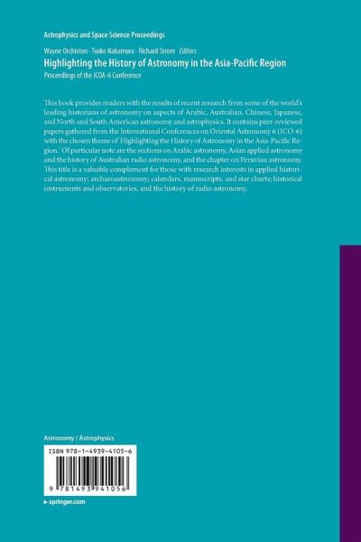 With just 400 pages, this title provides readers with the results of recent research from some of the world's leading historians of astronomy on aspects of Arabic, Australian, Chinese, Japanese, and North and South American astronomy and astrophysics. Of particular note are the sections on Arabic astronomy, Asian applied astronomy and the history of Australian radio astronomy, and the chapter on Peruvian astronomy. This title is of particular appeal to those with research interests in applied historical astronomy; archaeoastronomy; calendars, manuscripts, and star charts; historical instruments and observatories, and the history of radio astronomy.