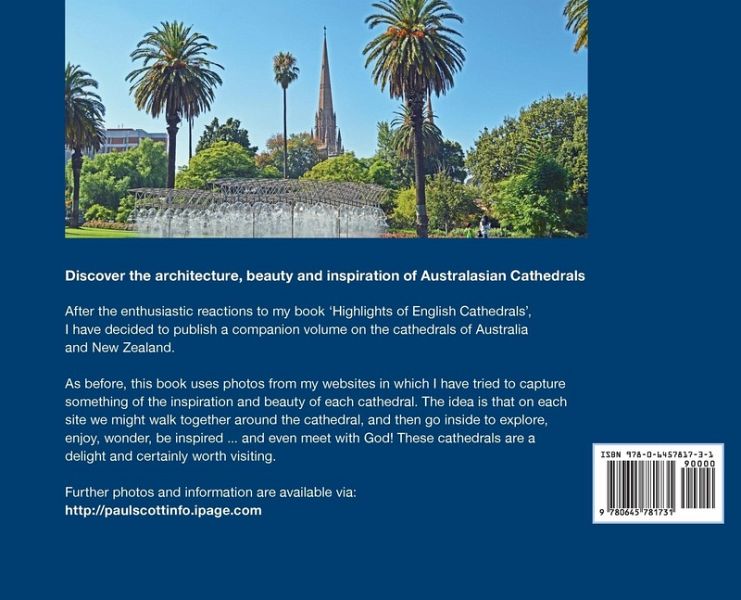 Paul Scott is a retired mathematics professor from the University of Adelaide, Australia, and a member of St Peter's Anglican Cathedral in Adelaide. His interests have included mathematics education, geometric models, playing in brass bands, photography, construction of websites, churches and cathedrals, volcanoes, lighthouses and windmills. Paul has made several trips to England with a special project in mind: photographing in some detail all the cathedrals of England. His first book is titled 'Highlights of English Cathedrals'. His second book, 'Highlights of Australiasian Cathedrals' is a companion volume on the cathedrals of Australia and New Zealand. The photographs, together with accompanying text can be viewed at: http: //paulscottinfo.ipage.com