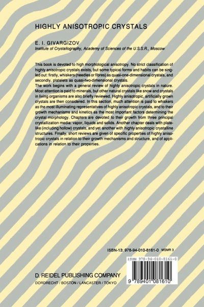 Anisotropy, i.e., the dependence of structure and properties on direction in space, is the most striking characteristic of crystals. Anisotropy is a result of the discrete nature of the crystal lattice, and it is the characteristic which distinguishes the crystalline state from another solid state of matter, the amorphous. The anisotropy of the structure and properties of crystals (this can be called their 'internal anisotropy') is also reflected in their external structure, i.e., morphology. The reflection is, however, non-linear: properties such as mechanical hardness ... do not change strongly (typically several tens of percents, depending on direction) while the morphology ... : the linear sizes in different directions of individual crystals often differ by several multiples or even several orders of magnitude, depending on the symmetry of the crystalline lattice and/or of the crystal prehistory. The enhanced anisotropy of morphology is, as a rule, a result of growth kineticsof different crystalline faces; it reflects a non-linear character of the kinetic laws of growth. This book is devoted to high morphological anisotropy. No strict classification of highly-anisotropic crystals exists. However some typical forms, or habits, can be singled out: first, whiskers (or needles, or fibers) as quasi-one-dimensional crystals, and second, platelets as quasi-two-dimensional crystals.